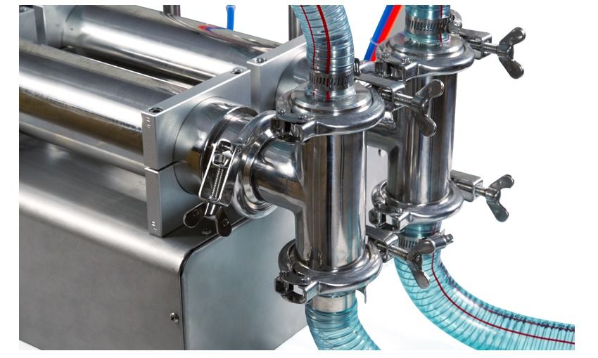 Riempitrice Full Stainless Steel a 2 teste, riempitrice a pistone 10-5000ml